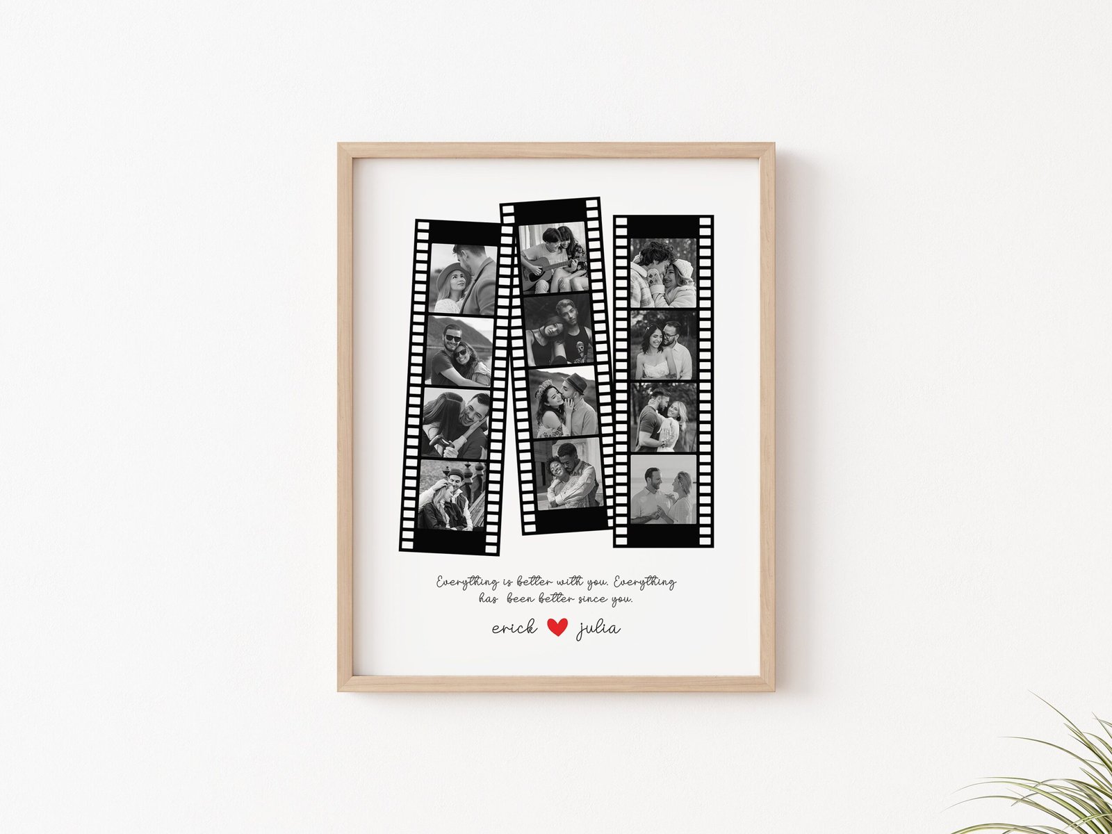 Mark your anniversary with a personalized and sentimental touch by gifting your boyfriend, husband, or girlfriend a Custom Retro Camera Roll Portrait. Transform your shared memories into a nostalgic work of art with this number one collage.